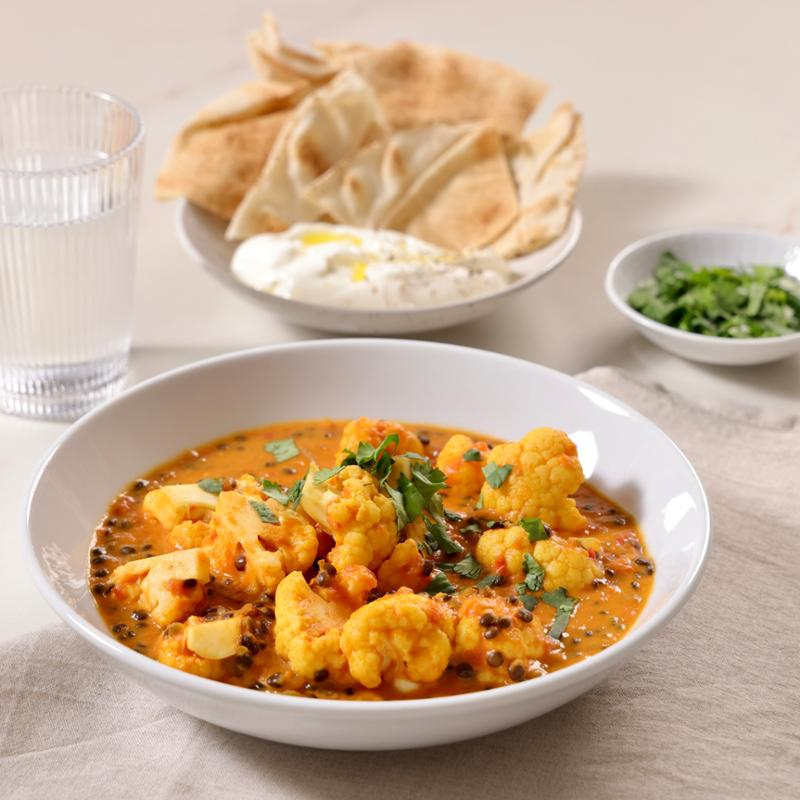 Krämig curry med gröna linser och blomkål